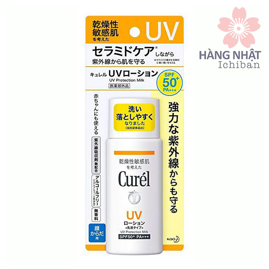 Sữa chống nắng Curell SPF 50+ / PA+++ dạng sữa dễ dàng sử dụng cho mặt và cơ thể làm cho da mịn màng và duy trì độ ẩm, thấm rất nhanh, không gây bóng dầuphù hợp với da nhạy cảm. Bạn cũng có thể sử dụng Curell trên làn da mỏng manh của bé. Curell không chứa cồn, không màu và không mùi hương.