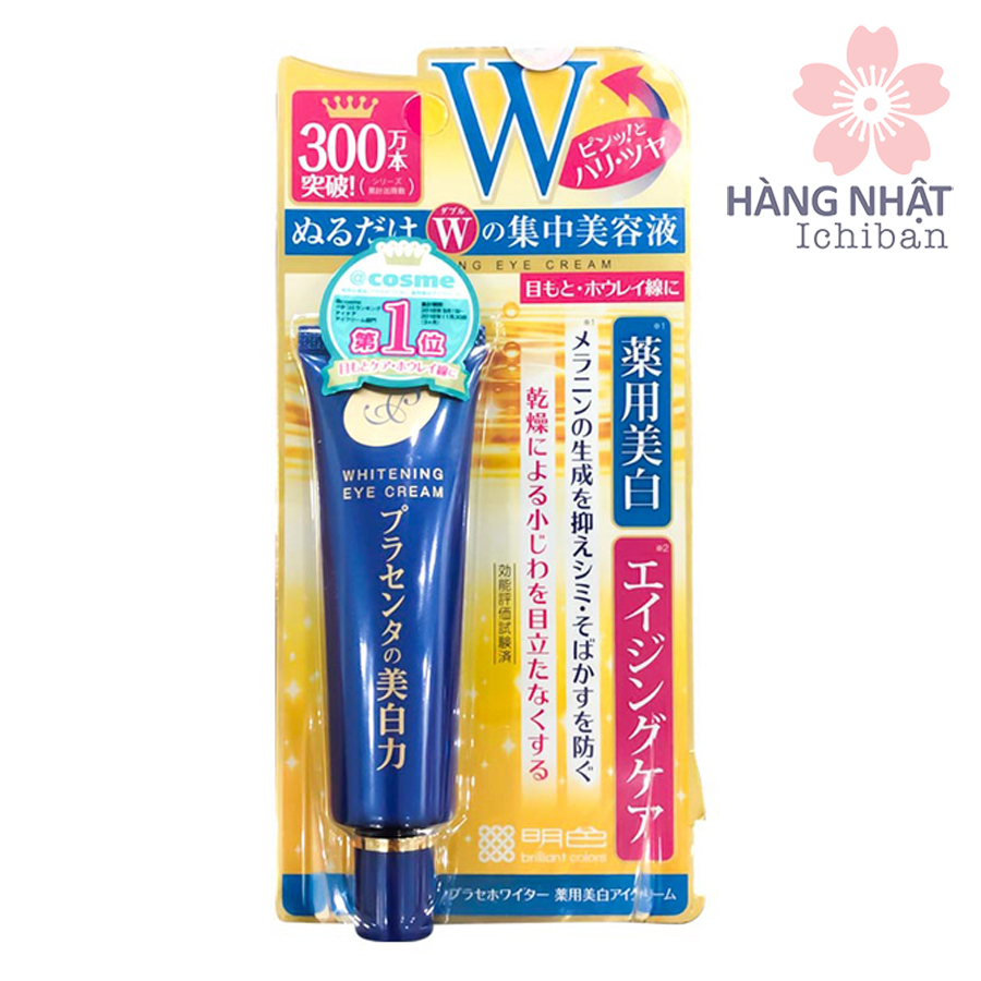 - Kem dưỡng mắt Meishoku Place Whitening Medicated Whitening Eye Cream với chiết xuất nhau thai và vitamin E giúp trị thâm quầng mắt, đồng thời chống lão hóa hiệu quả. Sản phẩm cực kỳ nổi tiếng này nhiều năm liền đạt thứ hạng cao trên tạp chí Cosme Nhật.