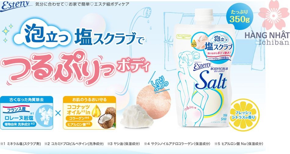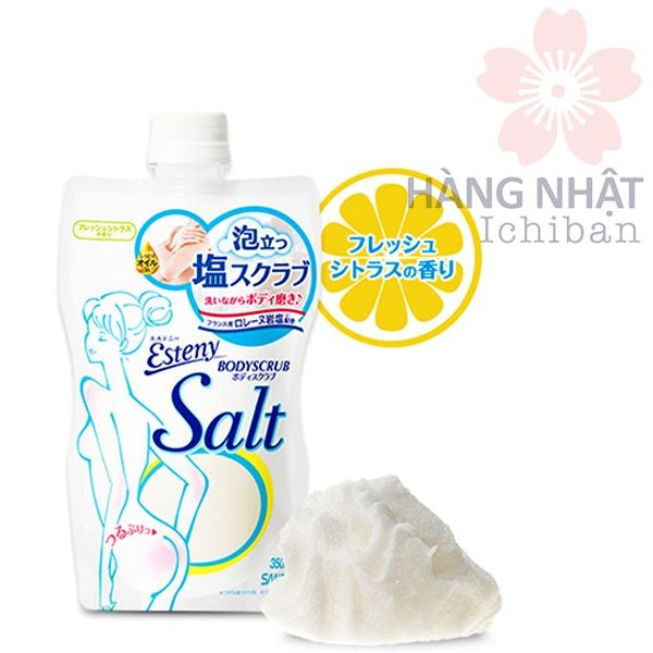 - Với thành phần chính là những hạt muối nhỏ, mịn giúp làm sạch da, loại bỏ các tế bào da chết trên cơ thể.