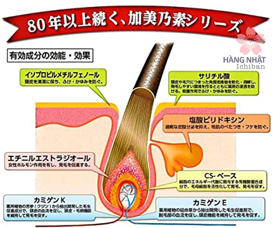 - Kamigen E và Kamigen K: tăng lưu thông máu, kích thích mọc tóc nhanh và dày.