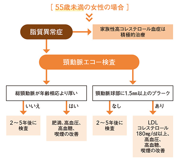 Ngược lại, đối với phụ nữ dưới 55 tuổi, việc xác định chắc chắn chứng tăng cholesterol máu do di truyền là rất quan trọng. Nếu kết quả siêu âm động mạch cảnh không có vấn đề gì, lần kiểm tra tiếp theo có thể được thực hiện sau khoảng từ 2 đến 5 năm.